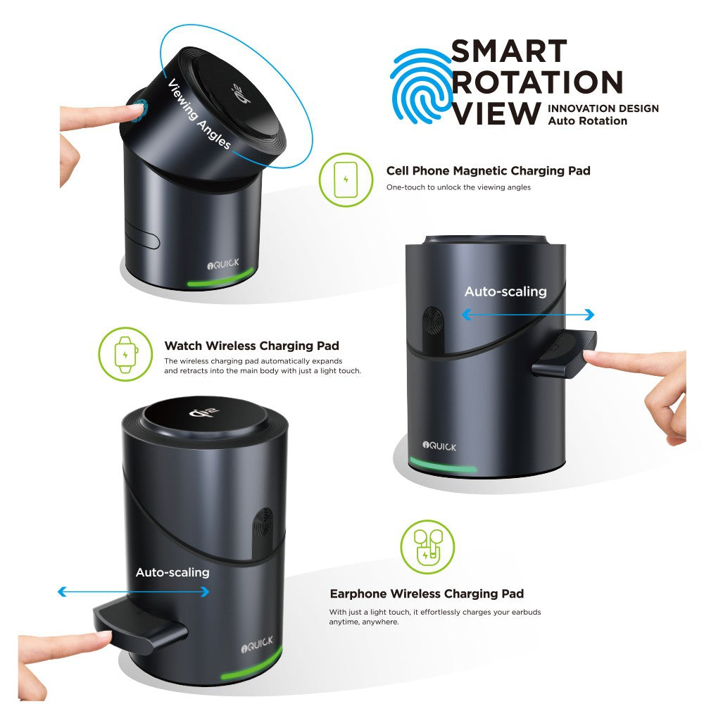 - 3 IN 1 WIRELESS CHARGER Support for Series iPhone/ Android/ Airpods/ pro/ iWatch.